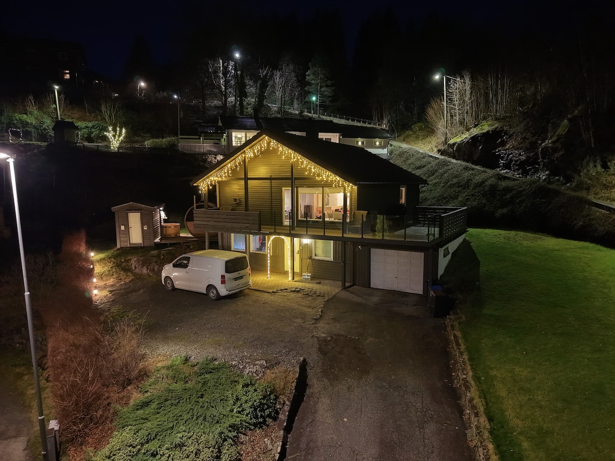 Stor bolig/hytte med fantastisk utsikt! Her kan du starte dagen med en god kopp kaffe mens du nyter utsikten over Norske fjord og fjell. Huset ligger veldig sentralt i Sauda med gåavstand til kafeer, badeanlegg, golfanlegg, idrettspark, turløyper, kino mm. I tillegg er du en kort kjøretur fra Svandalen skisenter med sine flotte løyper og nydelige turområder både sommer og vinter. I hagen kan du nyte livet i ulike soner for avslapping og kos.