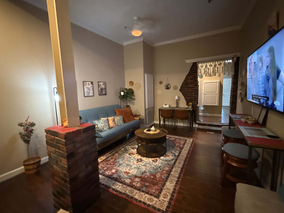 This 1 bedroom, 1 1/2 bath luxury apartment is located in historic downtown Fayette, 45 minutes from Tuscaloosa and the The University of Alabama. It features original hardwood floors and 12 foot ceilings with all new high-end appliances and finishes. This relaxing vacation apartment has plenty of free street parking, self check-in and an elevator. The bedroom has a comfortable king size bed and a twin roll away bed available upon request.