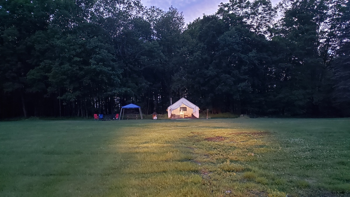Empire Campground is surrounded by trees, hiking trails, and utter peacefulness! You will be able stay in our Montana 4 season tent which accommodates 4 to 6 people. This is a perfect retreat to relax, and getaway from everyday stress. We are centrally located to many attractions for your enjoyment. We are 8 miles away from Bethel Woods, 10 miles away from Monticello Raceway, 15 miles away from Resorts World Catskills, and minutes away from lakes and hiking trails. [Firewood sold separately]