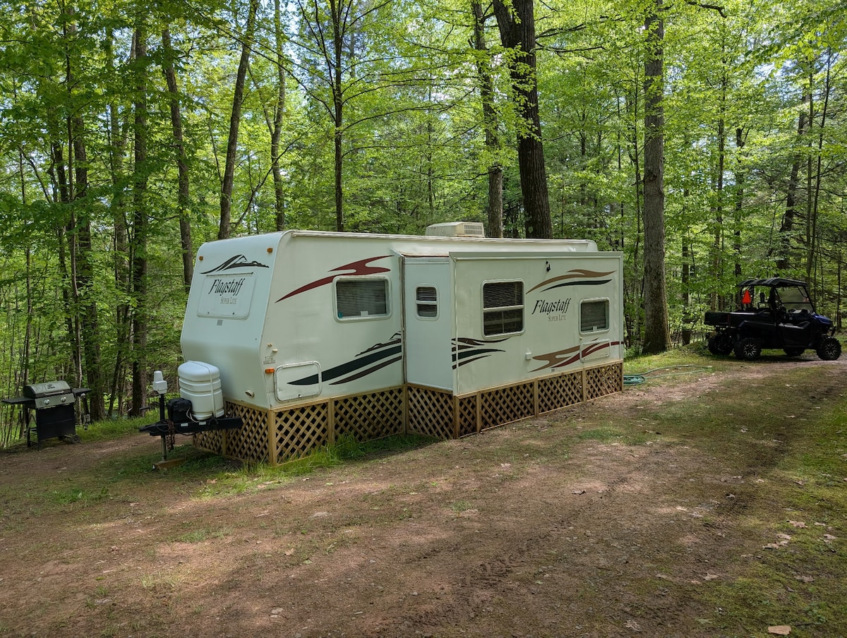 The Rv adventure is located at The Covered Bridge Campground in Livingston Manor NY on an absolutely beautiful creek endless nature. 45 minutes to Bethel woods. There is WiFi on the campground but your in the mountains in the woods. If you want to disconnect and be with the beauty of nature this is the perfect place. Book 2 day for your adventure in the woods with all the comforts of home. We provide all clean bedding, towels, pots, pans, bbq and fire pit.