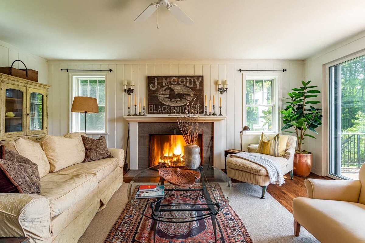 Butternut Farm Cottage is an 1880's farmhouse. One and a half story great room with wood burning stove, kitchen, dishwasher; laundry room, two bathrooms and library with TV and Wifi. Lots of natural light. Sound system throughout. Covered porch. Comfortable beds. BBQ grill and fire-pit. Good for couples, solo adventurers, business travelers, families, and medium size groups (up to 6). **While not an issue for most some ambient noise from Rt. 17 is heard when outside.