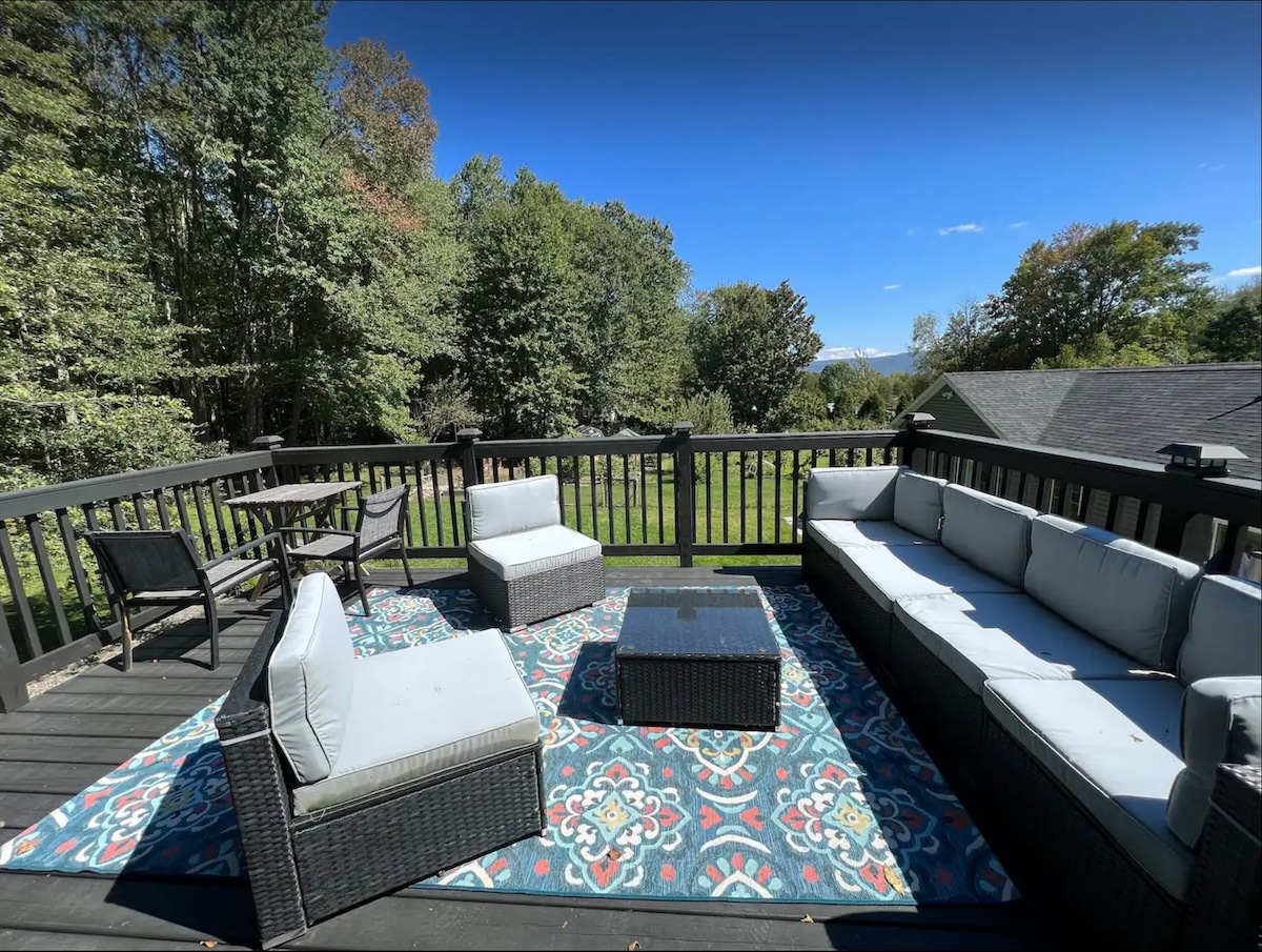Enjoy this nice getaway cozy place with your friends and family with a private deck on a beautiful property hosted by a mother-daughter team! Just under 2 hours from New York City! This two-bedroom apartment includes a new kitchen, and living/dining room with a sofabed and accordion doors so it can be turned into a third bedroom for a night. There is also a comfy sitting area with a smart TV. This place is a part of a bigger house. Dogs are ok. We have cats in our part of the house.