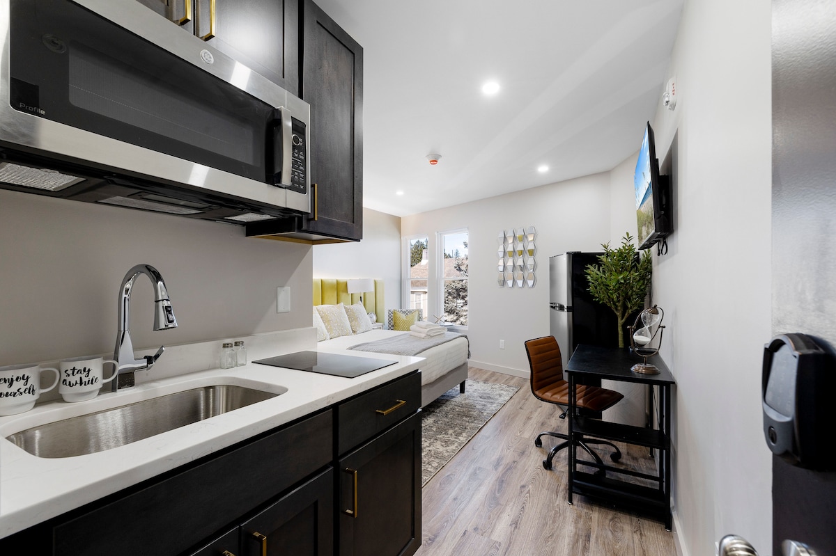1卧1卫公寓,带客厅、小厨房和免费无线网络