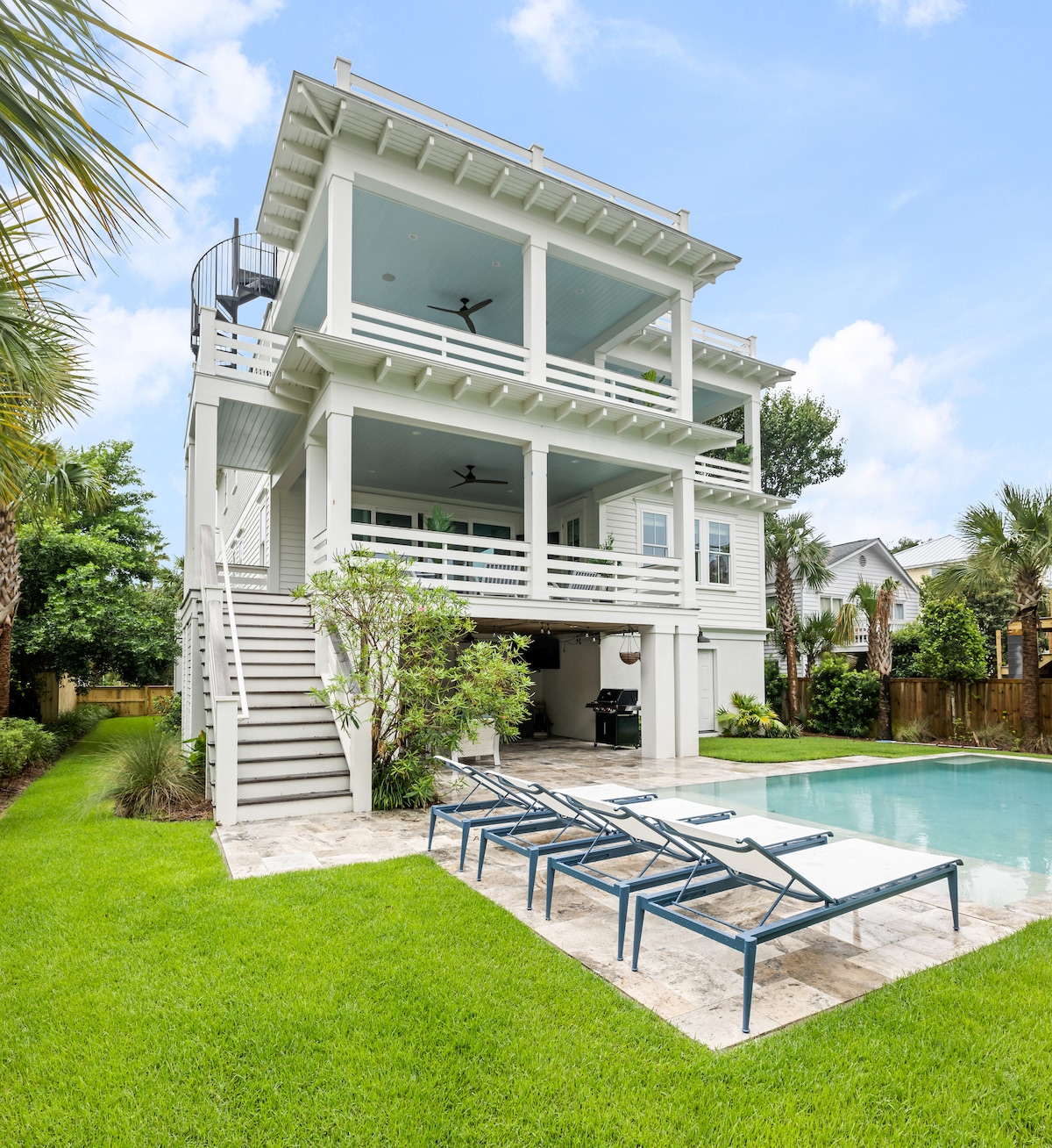Have fun with the whole family at this stylish place. This home is ideally located walking distance to the beach and near everything IOP has to offer. Enjoy sunsets on the rooftop patio and spend hours swimming in the pool. The home is ideal for families with a number of games, shuffle board, bikes, a golf cart, four patios, and tons of interior space. The home has all new furniture and is stocked with everything you need to enjoy your stay and feel like you are at home.