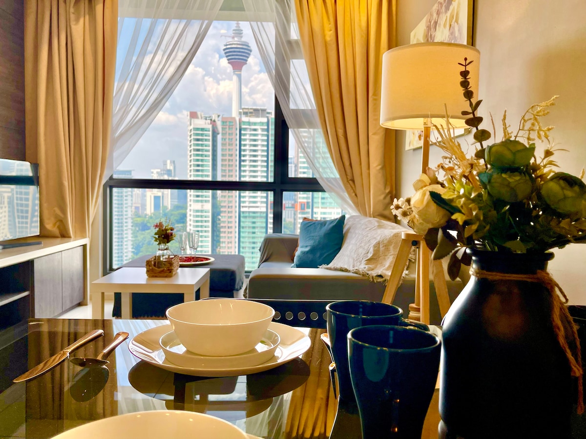 Why stay at Elegance Jr Suite at Lucentia Residence - the best views of KL - beautifully decorated with a fun spirit - centrally located - near public trans - fast wifi - TV with Netflix, Apple TV, Prime Video - 2 gorgeous pools - family friendly with baby crib & high chair upon request - gym, pool table, BBQ pits, piano - garage parking - sleeps 3 - LalaPort Shopping Mall & the WOW entertainment street are attached - grocery, drug store & many restaurants are attached - movie theatre GSC