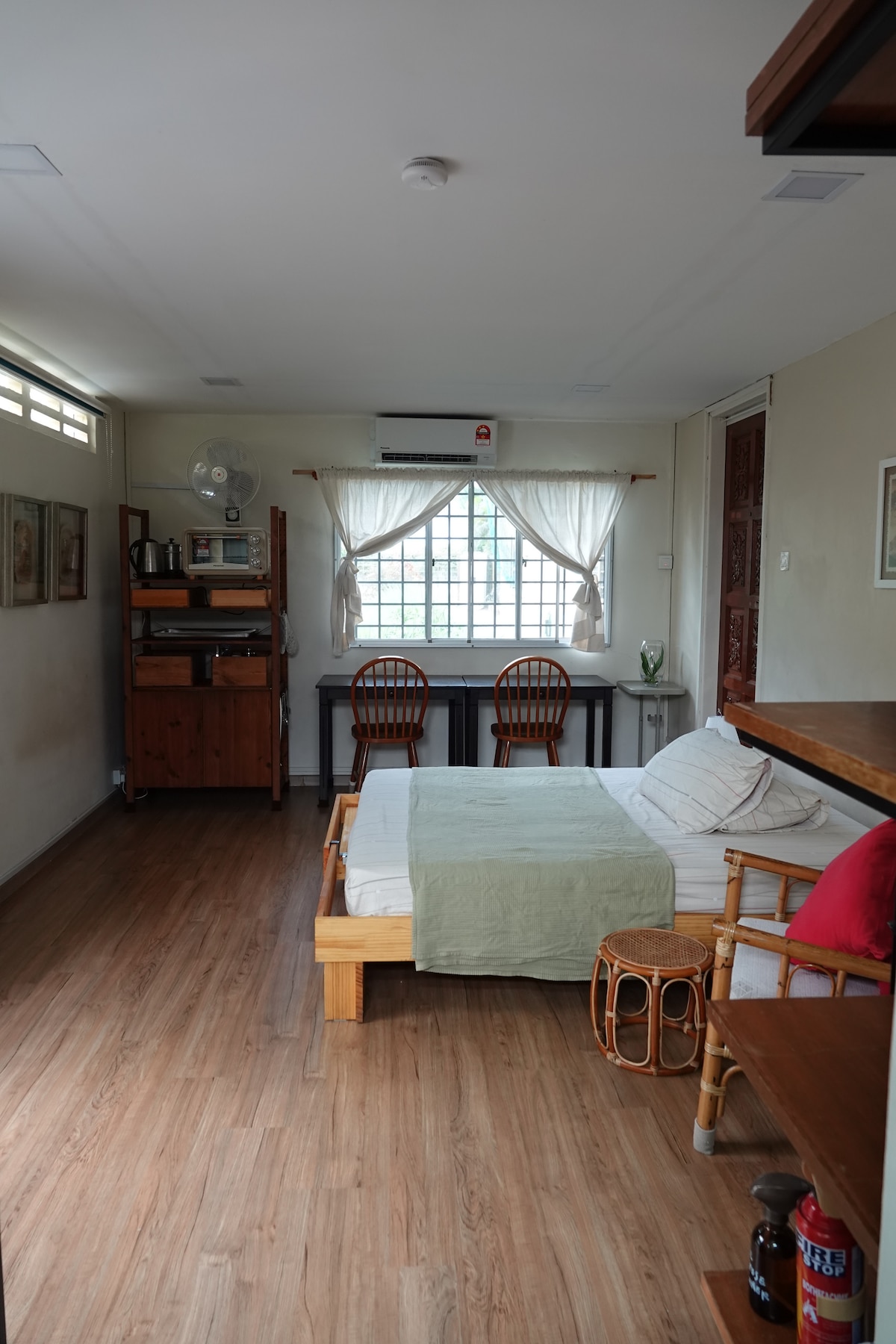 🚭 Non-smokers only 🚭 Self-contained studio with an attached bathroom, firm queen bed, electric oven & pot, study-dining table as well as netted windows & doorways, Nomad Studio is intent on being your comfortable home away from home. 🚄 🚌 We are centrally located & connected to major public transportation routes 🚙 🛫. ⬇️ Scroll down for details & FAQ ⬇️ 🚭 Non-smokers only 🚭