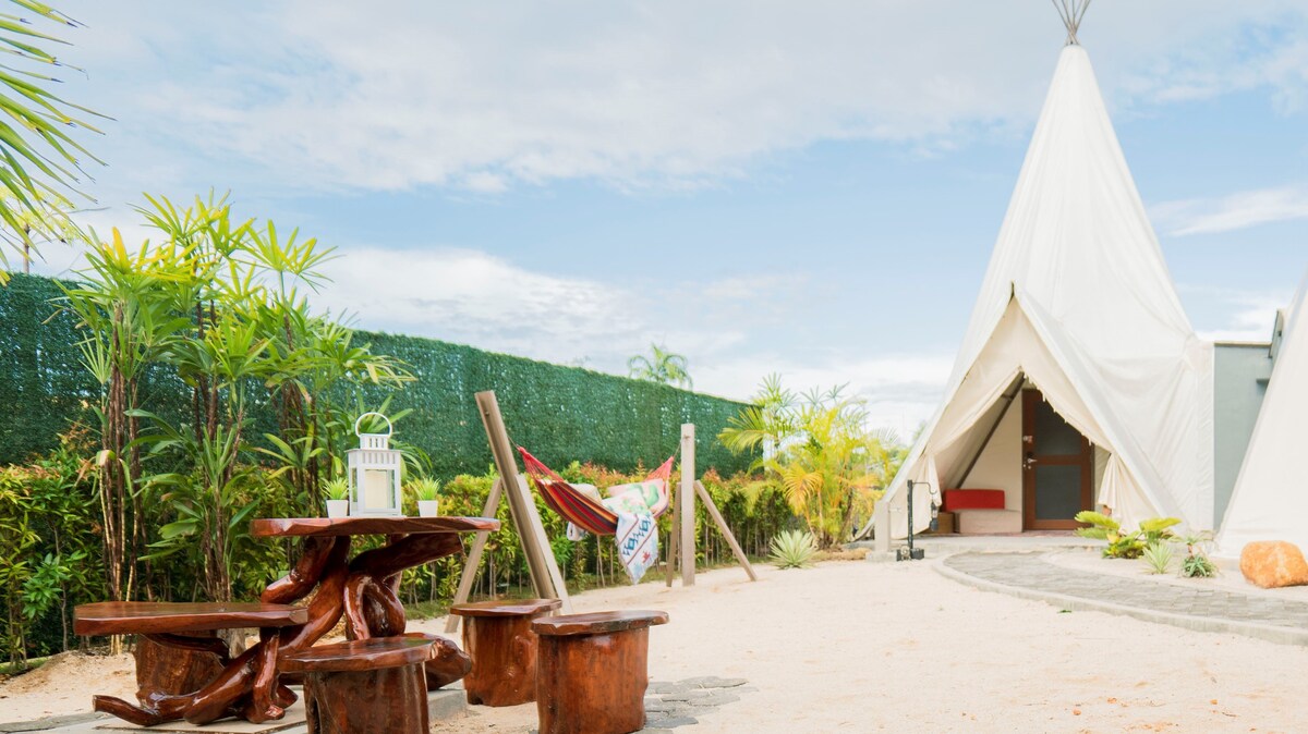 Enjoy the lovely setEscape to a romantic seaside glamping tent surrounded by nature. Enjoy the ocean breeze, cozy air-conditioned comfort, and peaceful nights under the stars — perfect for couples or families seeking a unique tropical getaway.ting of this romantic spot in nature.
