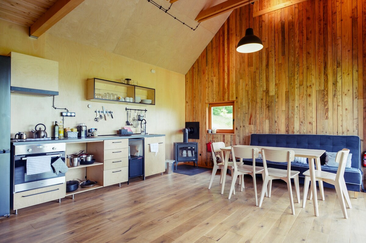 Hruška je největší z domků, ložnice v patře je doplněna o další patýrko na spaní, které si zamilují zejména děti. Velkorysý otevřený prostor, modřín, bříza, pořádná kuchyně s krbovými kamny a terasou, co víc je třeba… Domek je ideální pro 4 členou rodinu, ale pohodlně se do něj vejde až 5 osob. Domky jsme stavěli s láskou, důrazem na minimalistický moderní design, s harmonií k přírodě. Usazené nad krásným šumavským údolím. Přijeďte si užít pohodu a klid s nádherným výhledem do okolních kopců.
