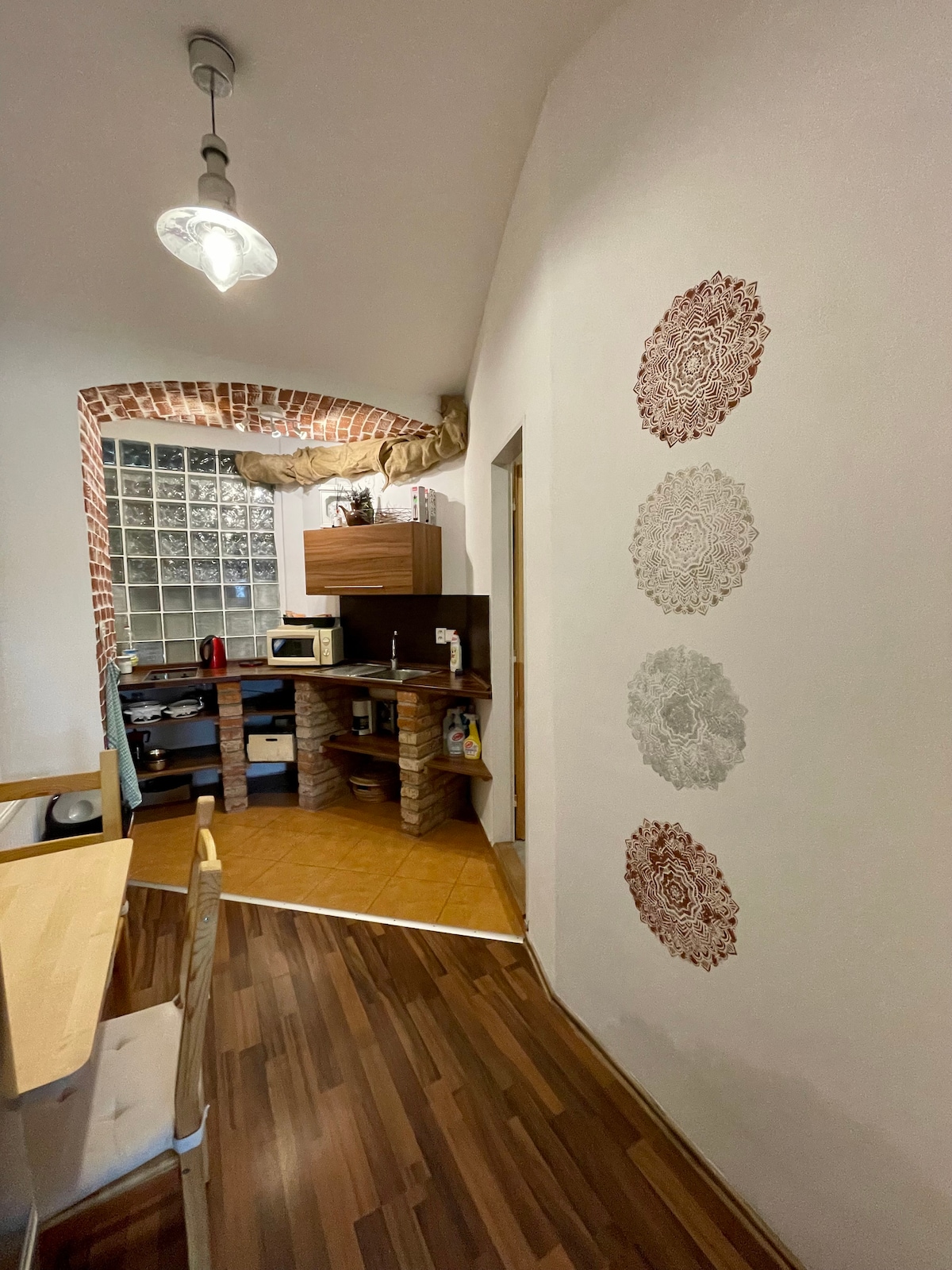 The independent apartment is located in the area of Srubec-Stará Pohůrka; 5 km from the center of České Budějovice. The apartment is divided into two rooms - a kitchen, where there is a sofa bed that can accommodate two people, and a bedroom, where there is a sofa bed for 2 people and the possibility of an extra bed/crib. The kitchen is fully equipped (electric oven with hob, microwave, dishwasher, kettle). The kitchen also includes a fireplace. The apartment has a shower and a separate toilet.