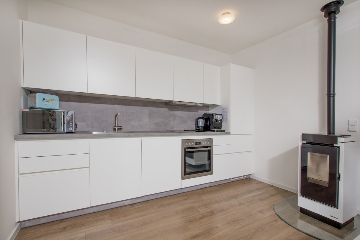 Stylish restored old barn in a stunning secluded location, offering 120 sqm of space with panoramic views of the countryside, a 50 sqm gallery with large windows, an infrared cabin, a walk-in shower, a bathtub, a luxury designer kitchen, terrazzo marble flooring with electric underfloor heating, a historic tiled stove from 1700 and a fenced garden for as many dogs as you like. A dream just 15 min. from Passau, 3 min. from the motorway, and 10 min. from the Danube. Bookable from Nov 2025