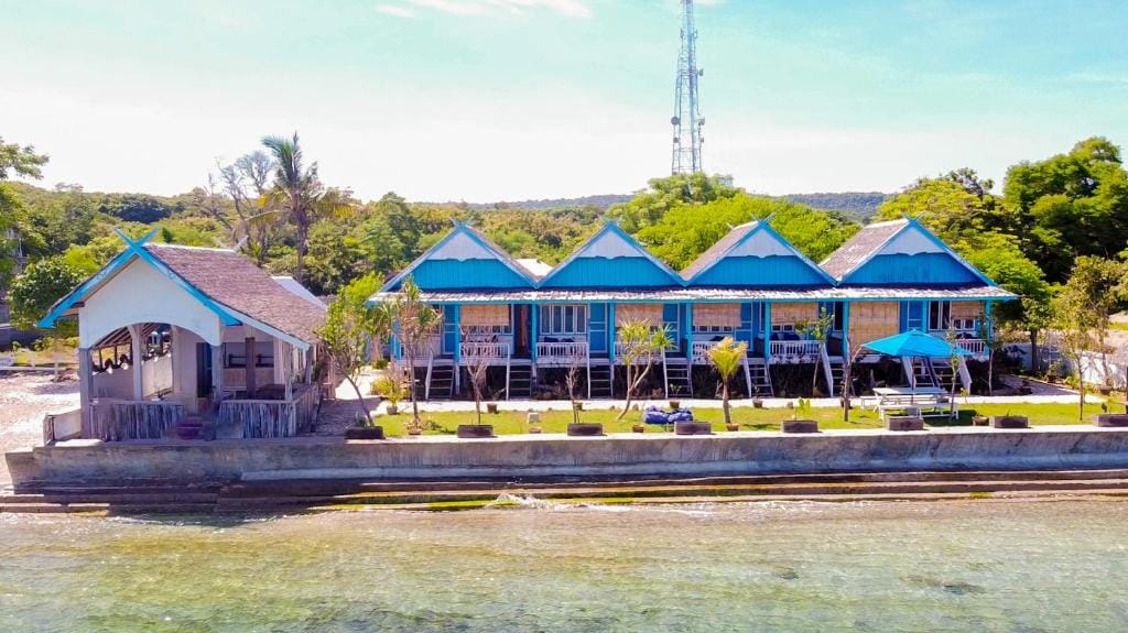 Experience a perfect sanctuary at Moyo Island Resort, where charming blue wooden cottages meet the raw beauty of Labuan Aji. This beachfront gem offers direct access to crystal waters and breathtaking ocean view panoramas from your bed. Each private room features AC, parquet floors, and a tropical bathroom. Whether enjoying breakfast on your balcony, relaxing by the pool, or snorkeling the reef, our resort provides a soulful escape and the ideal gateway to Mata Jitu Waterfall.