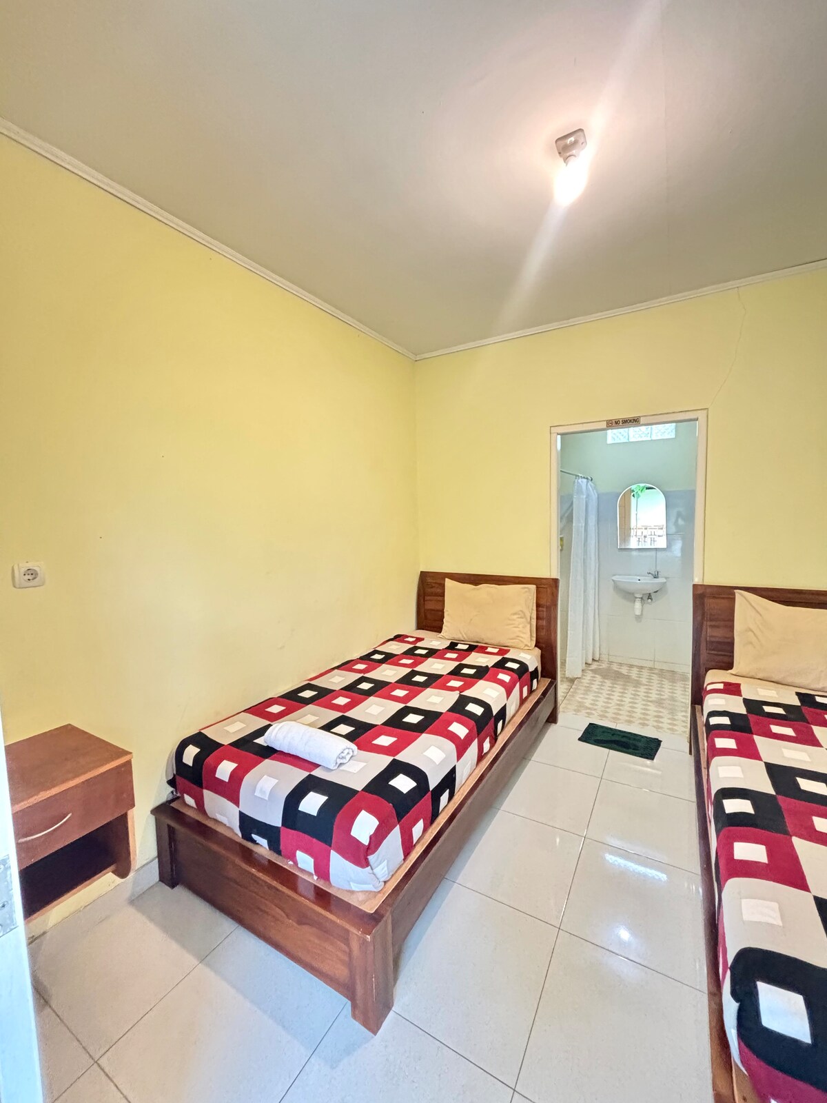Very quiet private room, on the beach with sea view, ac, internet, terrace, 1 king bed, 2 single beds, desk, shelf, private bathroom with hot shower, laundry service, meals... Property far from the crowd, in the middle of an untouched nature and an incredible scuba diving area. We offer PADI courses, fun dives, snorkeling, trekking, visits of giant trees, traditionnal villages... 10' to harbour for Sumbawa, Komodo, Flores, 1h45 to Airport. We speak English and Indonesian
