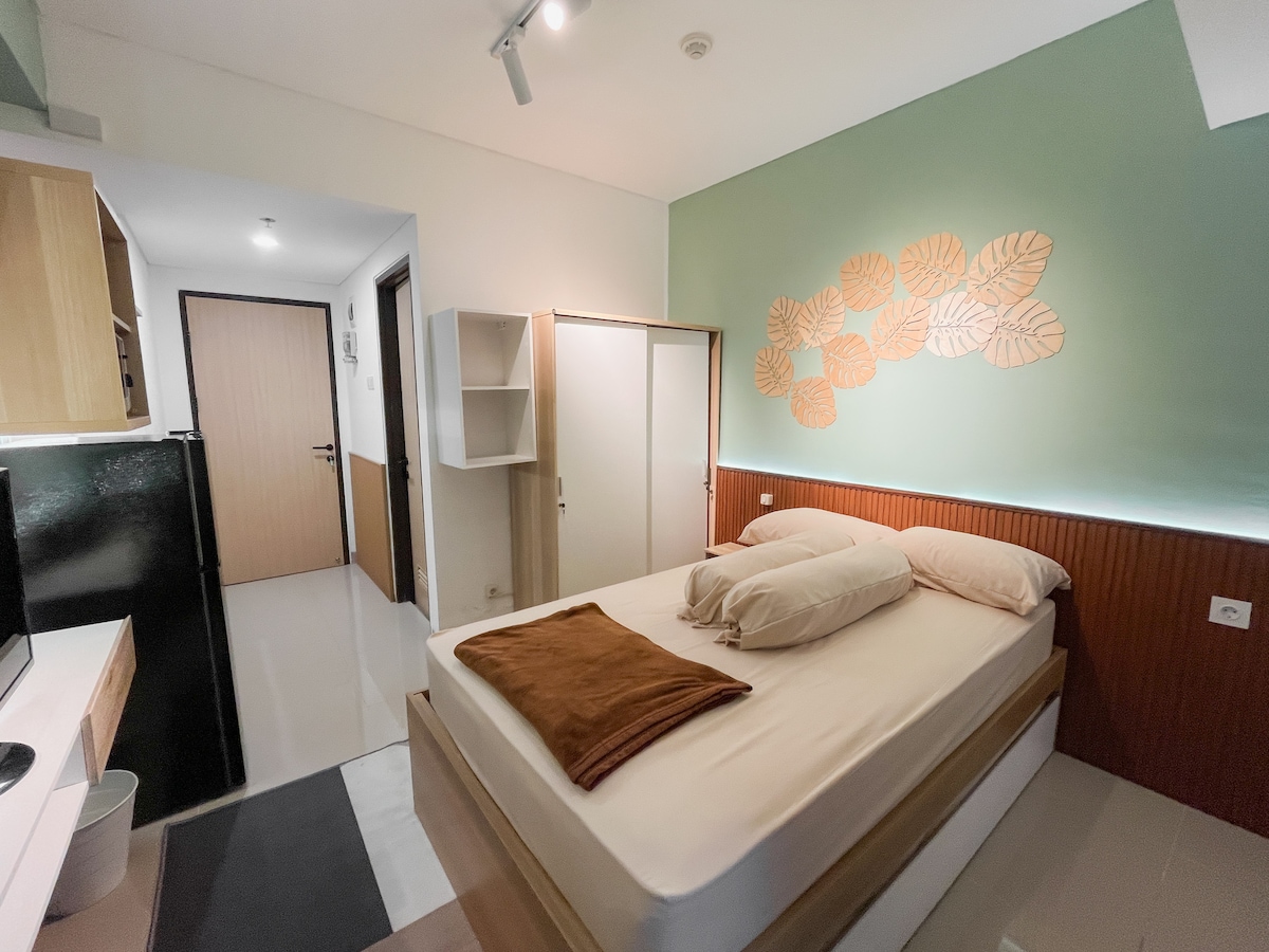 Unit apartemen type Studio 21 m2 furnished yang aman, bersih, sejuk, tenang & nyaman berlokasi strategis satu komplek dengan Jatinangor Town Square, dekat dengan kampus UNPAD, ITB & IPDN. Dapat disewa harian, mingguan, bulanan atau tahunan