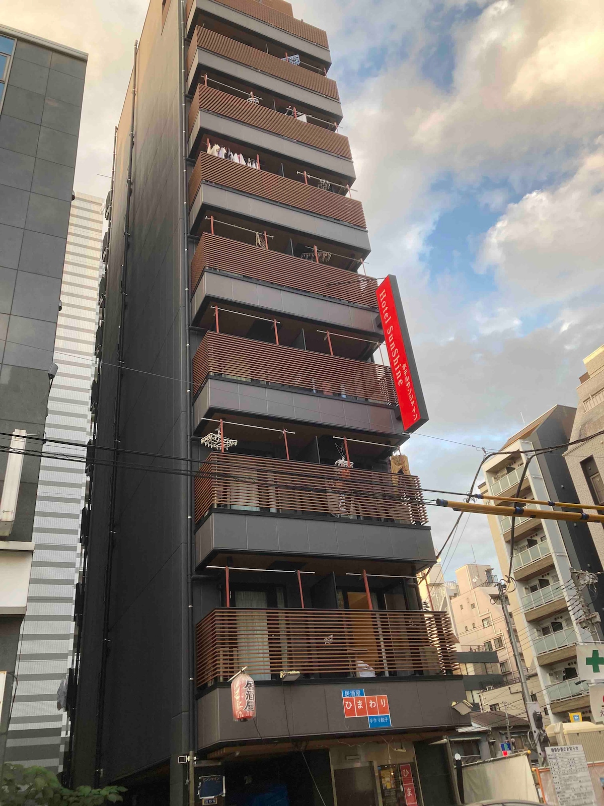 Located near the sky tree, the whole building is our hotel,with five floors and elevators: Room 101, Room 201, Room 301, Room 401 and Room 501. Next to them are 7-11, famly mart and Lawson, and on the opposite side are drugstores and Japanese style shops. Now you are looking at Room 301,This house is about 39 square meters, with a balcony of 3 square meters.