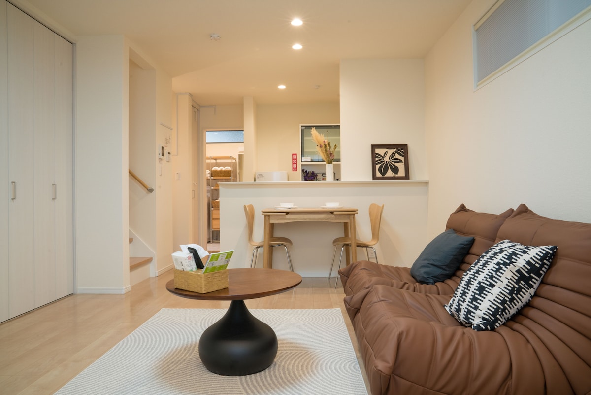 東武スカイツリーライン(東武鉄道伊勢崎線)鐘ヶ淵駅から徒歩6分。落ち着いた北欧風の新築 戸建て貸切です。(長期滞在可能です) ベビーベッド・ベビーハイチェア・ベビーカー完備。ママに優しい施設運営を目指してます。 (無料:事前にお申し出ください) 調理器具は一式揃っており、アットホームな雰囲気でお使い戴けます。ベッドリネンは清掃の都度交換していますので清潔です。 ご家族、カップル、ご友人同士、どんな方にもオススメできるハウスです。 【近くのお店】 ・居酒屋 徒歩1分 ・コンビニ 徒歩3分 ・スーパー 徒歩5分 ・100円ショップ 徒歩5分 ・弁当屋 徒歩8分 ・レストラン 徒歩13分 【交通アクセス】 ・最寄り駅(鐘ヶ淵駅) 徒歩6分 ・東京スカイツリー 6分 ・浅草 8分 【最大収容人数】 9名(大人6人、こども3人まで)