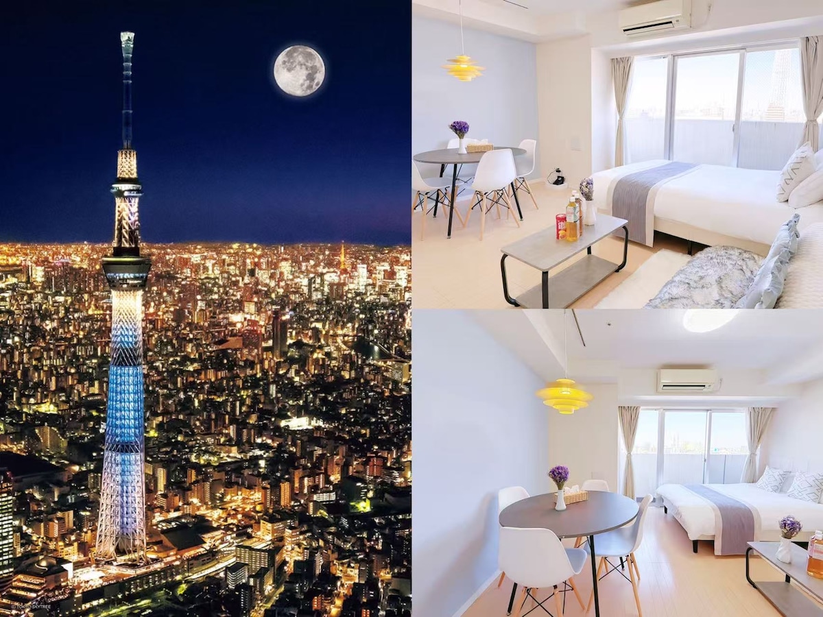 晴空塔景观电梯房50㎡|靠近车站|交通便利-直达秋叶原、涩谷、新宿、迪士尼、东京车站和机场|可住6人