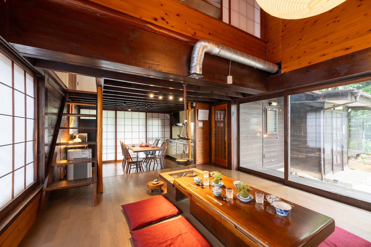 Panorama View市川は、高台から市川市内が見渡せる和風古民家です。 リビングには日本の伝統的な木である桜が咲いており、囲炉裏を使って日本の伝統的な生活を体験することができます。 バルコニーからは朝日や夕焼けを楽しむこともでき、市川市内を一望できます。 寝室は、4部屋あり、富士や桜の壁紙を眺めながらお休みになることができます。シャワールームとトイレは2つずつ用意があるので、大人数の宿泊でも快適にお過ごしいただけます。 また、徒歩3分の場所からバスに乗り、市川駅まで9分です。このバスは約10分おきに運航しているため、移動も不自由しません。※タクシーを使っても1,000円程度です。市川駅から東京駅までは18分なので、都内観光も容易です。 徒歩圏内に商業施設も多数あります。 ライフ(スーパー):2分 きん三(うなぎレストラン):3分 やま志な(居酒屋):5分 ガスト(ファミリーレストラン):6分 石乃湯(銭湯):6分 くすりの福太郎(ドラッグストア):6分 ファミリーマート(コンビニ):9分 車でお越しの場合は、徒歩2分のライフに500円/24時間で駐車することができます。