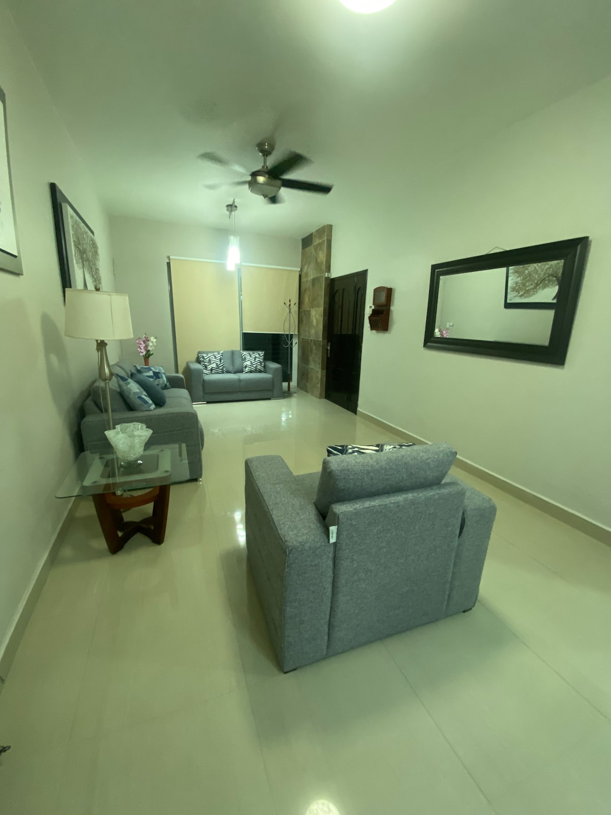 Diviértete con toda la familia en este alojamiento, de 2 recámaras una recámara cuenta con litera cama matrimonial e individual, (las 2 recámaras climatizadas) toda equipada con cocina, integral, sus accesorios para cocinar, refrigerador, área de lavado, sala de estancia (Climatizada) parrilla para azar, TV (cuenta con Netflix )area para trabajar, mesa de jardín, áreas verdes, estacionamiento para 1 auto