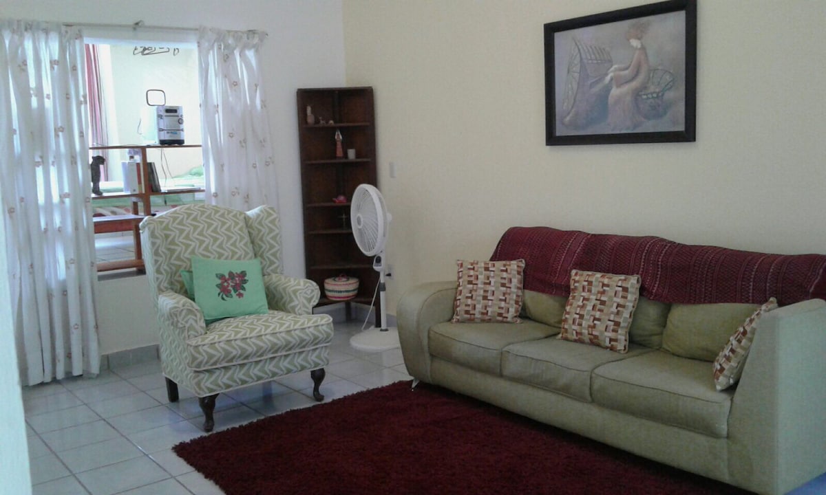 Relájate con la familia en este alojamiento donde la tranquilidad se respira. La casa de dos plantas; planta alta dos recamaras y baño completo. Una recámara con cama matrimonial, y en la otra recámara dos camas individuales. En la planta baja, sala comedor , cocina equipada, area de lavado y tendido. cerca de la casa hay de transporte público, restaurantes, parques , escuelas, gimnasios, supermercado.