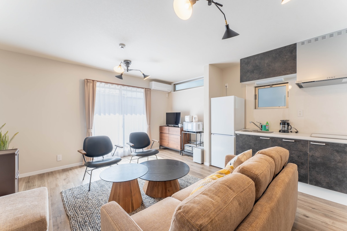 豪华公寓绝佳位置,车站步行5分钟,65㎡ 2室1厅最多8人,高速Wi-Fi,超大智能电视,洗衣烘干机