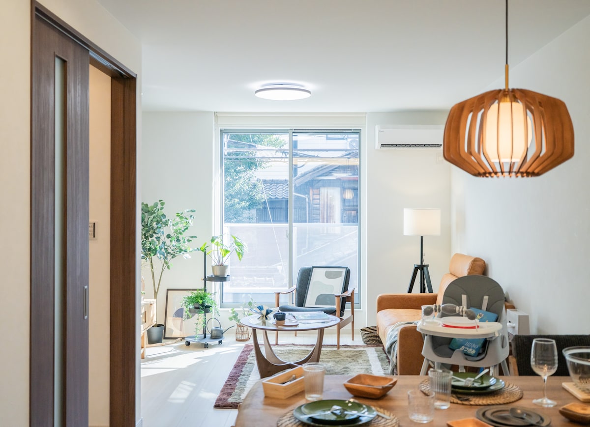 A two-story traditional Japanese house renovated by a famous designer with 4 bedrooms, 2 bathrooms, 2 toilets and 2 washrooms. JR Osaka loop line Momodani Sta is just a 5-min walk away. By train, 7 minutes to Namba and 45 minutes to KIX. Easy access to most sightseeing spots such as USJ, Umeda, Kyoto, Nara, Kobe. This area is close to all the major tourist areas but still distant from the crowds and noise, located in a quiet neighborhood.