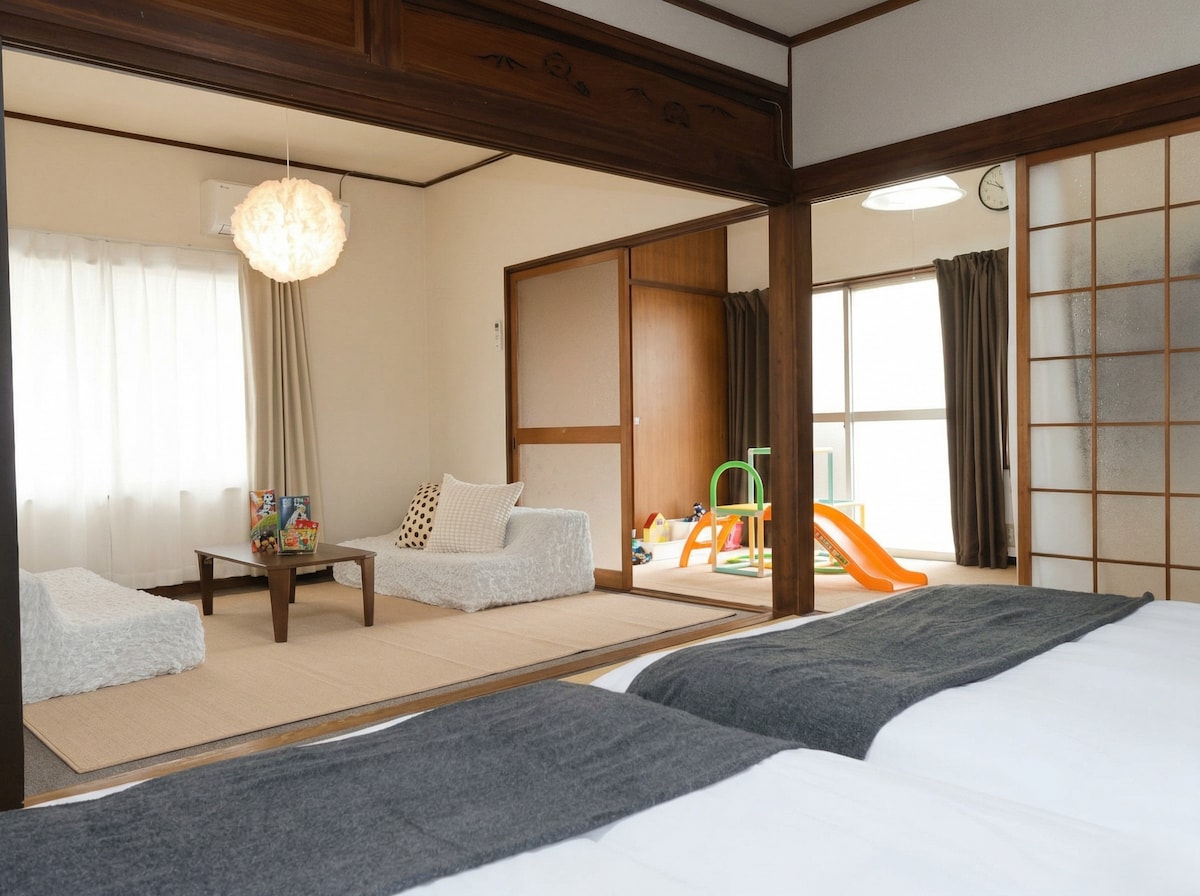 距南海住吉大社站步行6分钟 / 乘电车40分钟可到达关西机场 / 最多可容纳9人 / 4张床