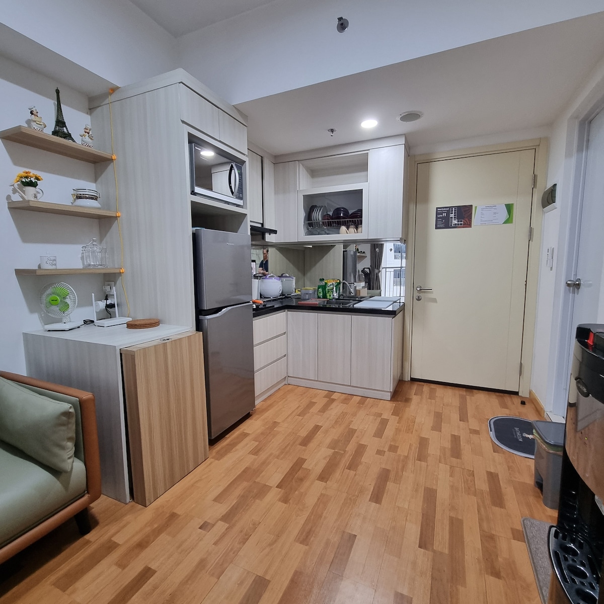 Bev Home (Tower Dakota M-Town Residence) is a non-smoking 2-bedroom apartment (46 sqm) in the heart of Gading Serpong, located just opposite of Summarecon Mall Serpong (SMS), with 24hr reception. The unit is located on 27th floor, with amazing high-rise view facing Pondok Hijau Golf. The unit interior is designed with Japandi / Minimalistic vibes, perfect for staycation with family and friends. On the 5th floor, you can find swimming pool, jogging track, outdoor gym, playground for kids.