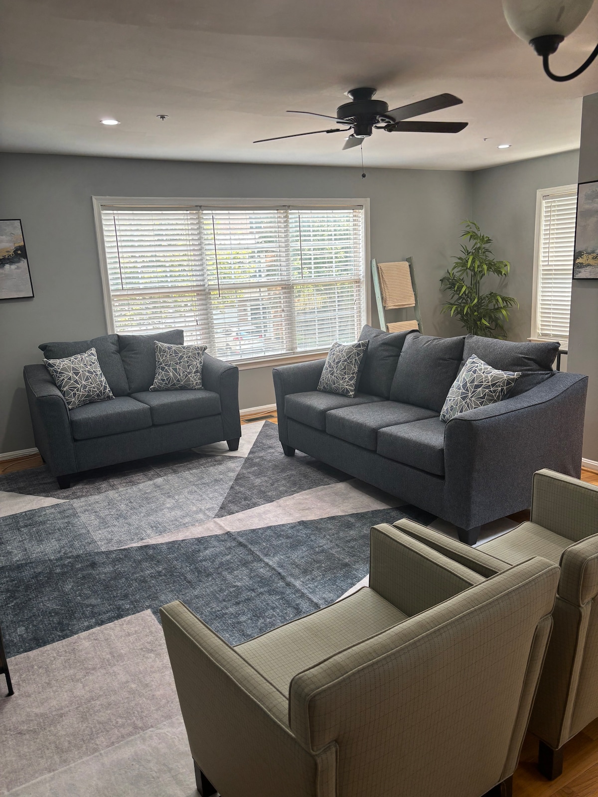 Welcome to The Serene Green Suite! 20-25 mins to DC & 10 mins to Northwest Stadium! Perfect for solo travelers, business trips, or couples seeking comfort, calm, and style. Relax in a peaceful setting with easy access to local hotspots and enjoy a space designed for both rest and productivity. Amenities: ~Plush queen bed ~55" smart TV ~Washer/dryer ~Private patio with seating ~Kitchenette & coffee bar ~Dining table ~Driveway parking ~Local guidebook Book now for a stylish, relaxing stay!