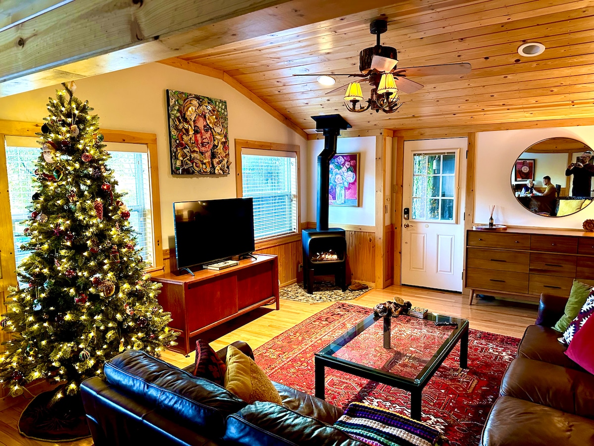 Kick back and relax in this quiet cabin in the woods. This elegant guest suite was designed to offer a regenerative retreat in beautiful nature. Unwind in the hot tub under the trees or enjoy stargazing by the fire pit gazing. *We invite you to read the full description and house rules for a 5-star experience for all*