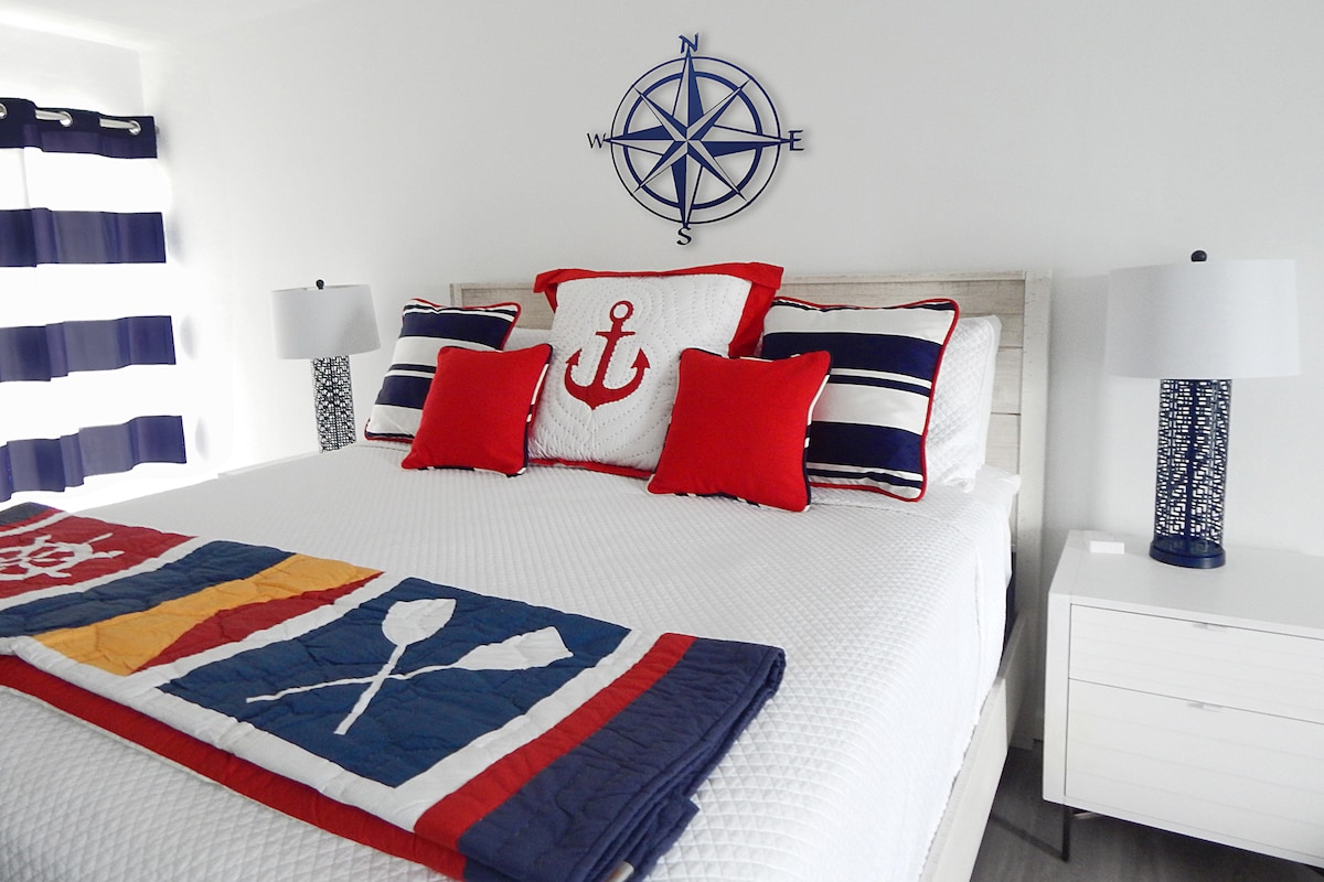 If you’re reading this, you’re already one step closer to paradise. Thank you for considering us for your getaway. Our charming Lighthouse Bungalow is a 2-bedroom, 1-bath loft-style retreat located just steps from our private beach. The master bedroom loft, accessed by a spiral staircase, offers a stunning bird’s-eye view of the Atlantic Ocean. The nautical-inspired living area opens to an exterior deck overlooking the beach—an ideal spot for peaceful mornings and ocean breezes.