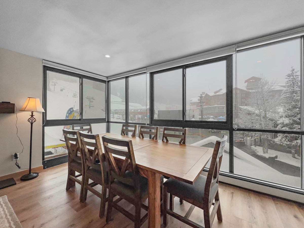 3 Bedroom 3 Bath Penthouse Corner Unit with Mountain Views!! • Dual Master Suites with King Beds and private baths • Short walk to the slopes, restaurants, shopping, and nightlife • SMART flat screen TVs, stainless steel appliances, full size in-unit washer and dryer • Overlooks night skiing, pool & hot tub, and Buffalo Mountain • Access to sauna, ski lockers, pool table, pool and hot tub courtyard • Heated underground paid parking • Located in River Run Village • Within walking distance of th