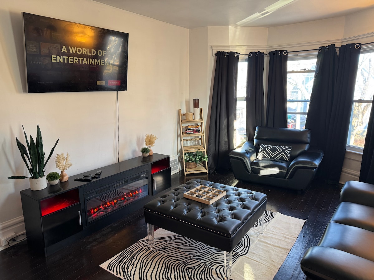 Enjoy a comfortable experience at this centrally-located home 1 block away from the strip in Highland Square. Central air, 2 bedrooms with brand new queen beds. Large kitchen with dishwasher. Netflix & Prime Video on tv's. Comfortable leather couches, front and back deck, and fire pit. Being 5 minutes from Downtown Akron, 35 minutes from Downtown Cleveland, and 10 minutes from Cuyahoga Valley National Park, there is a lot of nightlife, hiking and biking in the area. All are welcome!