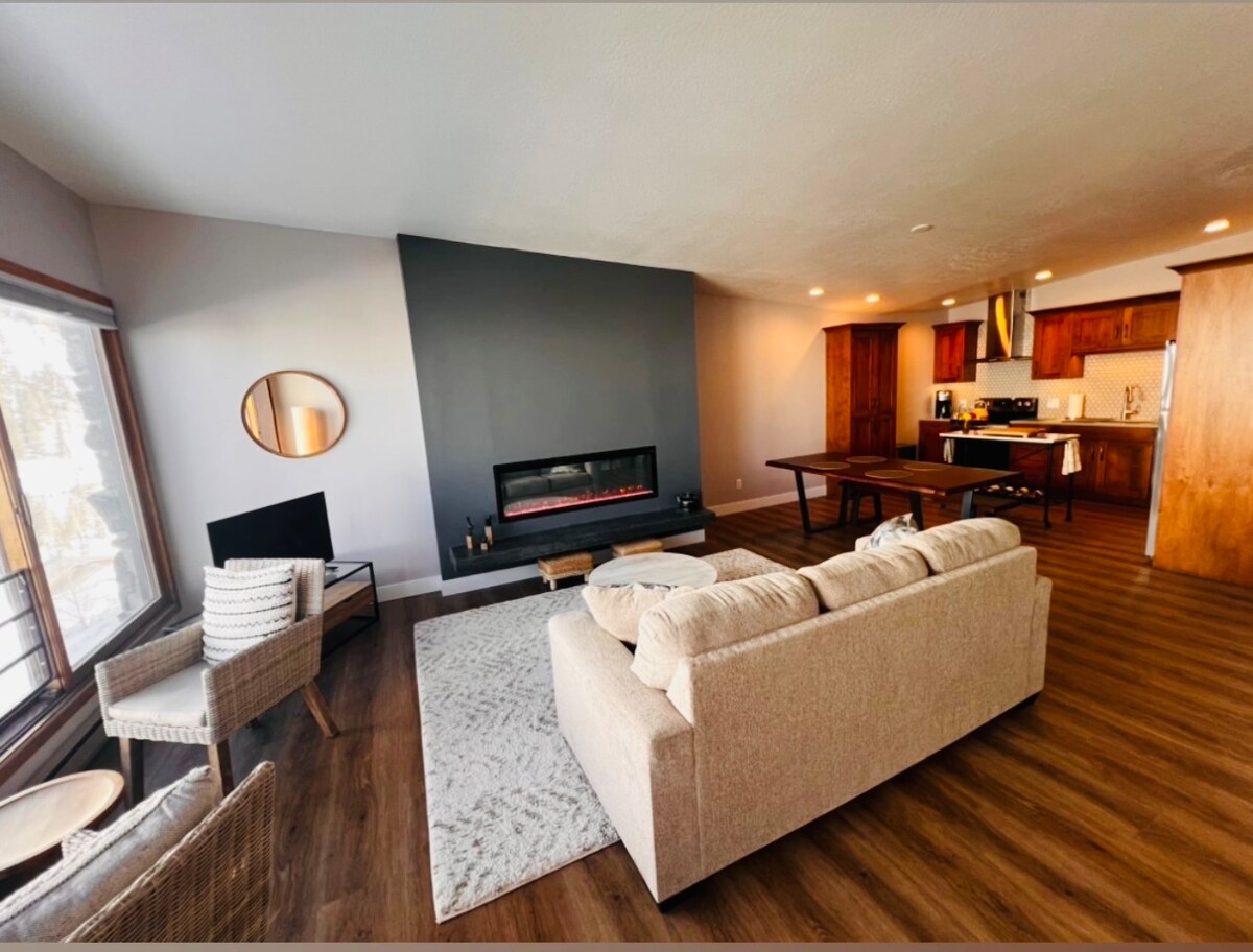现代1卧室/1卫生间滑雪出口、洗衣房、阳台、热水浴缸