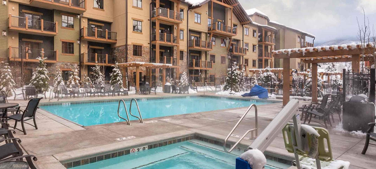 This studio features a comfortable king-size bed with a large flat-screen TV plus a well-equipped kitchenette, dining space and full bath. Additional amenities include a 24-hour fitness center, year-round heated pool and hot tubs, dry sauna, full-service spa, complimentary underground parking, ski valet, child care, concierge services and free local bus system, all conveniently located steps away from the Orange Bubble Express and Red Pine Gondola.