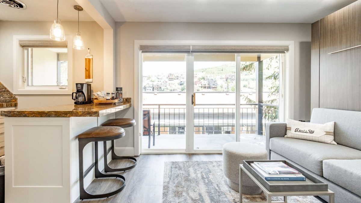 With historic Old Town Park City just outside your door, and the mountains steps away, you'll be hard pressed to fit everything in before dinner. Lucky for you, you won't have to go far, as famous Main Street dining, shopping and nightlife awaits you. Cozy meets comfort in this Junior Suite! Enjoy the modern kitchen, updated living space, and beautiful balcony. The decor of this suite has a mountain feel, truly transporting you to Park City. There’s so much to love about this quaint space!