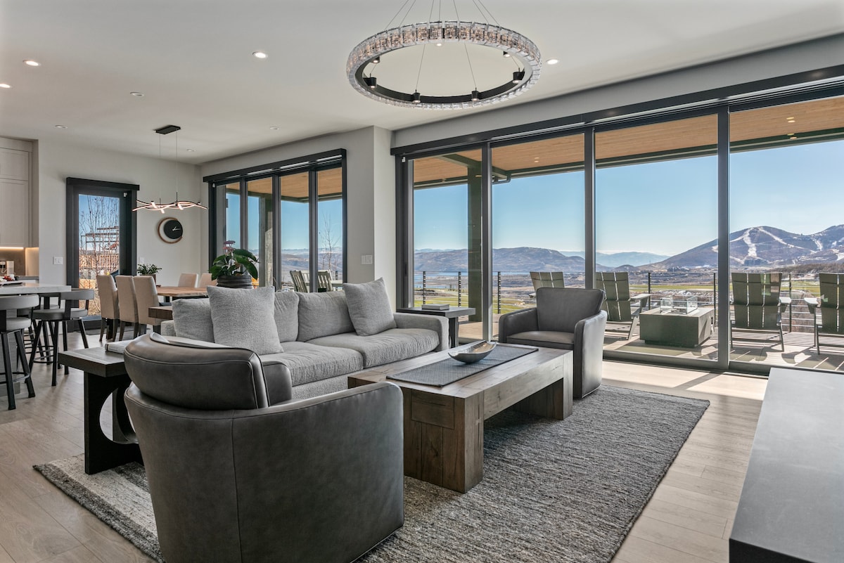 This stylish condo has stunning views of Deer Valley and Park City ski resorts minutes away, overlooking the Jordanelle Reservoir and Upper Provo River, in a new luxury home community called Benloch Ranch. Sit in the private 7 person hot tub or outdoor Finnish sauna, taking in the magnificent views, even do yoga outside on the deck, or relax after a day of skiing, hiking, biking, fly fishing, paddleboarding on neighborhood ponds or nearby lake, or other Park City area activities.