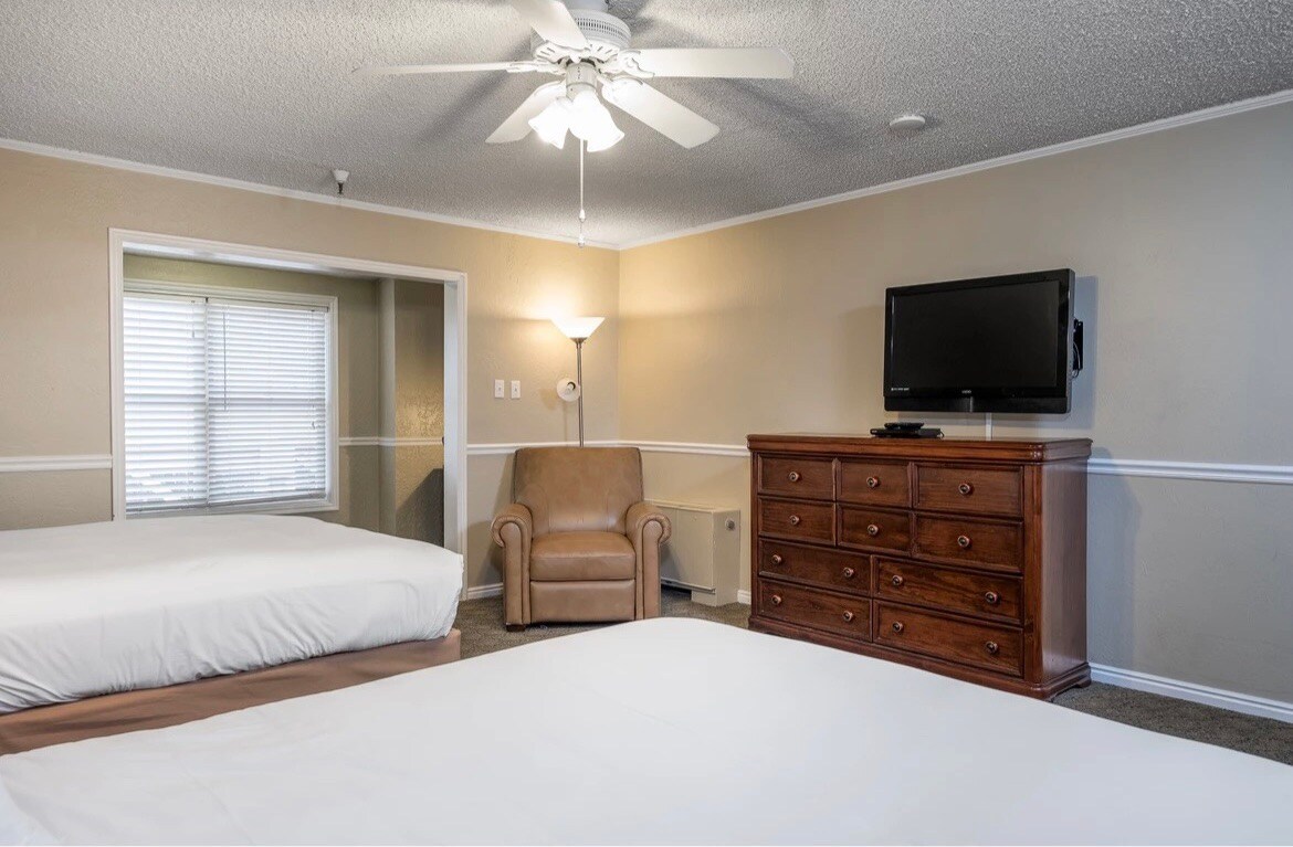 Have privacy and gathering space in the 1,100 sf Luxury Dual Condo Villa! Space to sleep up to 8 guests with 2 King beds and 2 Queen sleeper sofas in the living areas. Enhanced amenities include a fully equipped kitchen, jetted tub, fireplace and a private balcony or deck. The property has enjoyment for everyone! Pools, hot tubs, adult only pool and sauna area, arcade, gym, ski in - ski out, ski rental, outdoor recreation as well! *The actual room assigned may differ from the posted photos*