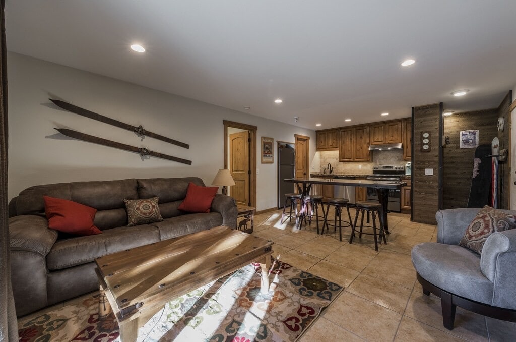 This is a newly remodeled 2 bedroom w/a luxurious King Master, as well as a Queen bed w/a child's loft bed in 2nd bedroom. There is a fully equipped kitchen and dining area. The living room has a FP, Smart TV w/a sofa, 2 lounge chairs w/views of the resort just steps away. Personal storage for skis & snowboards adjacent to unit. The outdoor heated pool & hot tub are a big hit with guests and a great way to wind down after a long day of shredding. The city bus system is free w/stop outside.