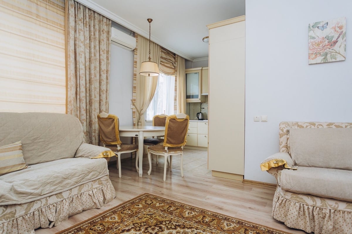 Modern and elegant design, fully equipped kitchen, all necessary appliances, including a washing machine, microwave oven, iron, etc. - all to ensure that your stay was comfortable, and any desire is satisfied. Spacious and cozy living space (50 sq.m), beautiful furniture - modern and comfortable, large flat screen TV and WI-FI make this apartment ideal for work and leisure. At the entrance door is a combination lock.