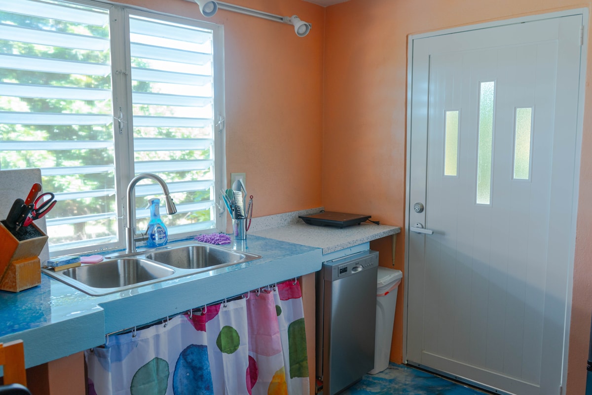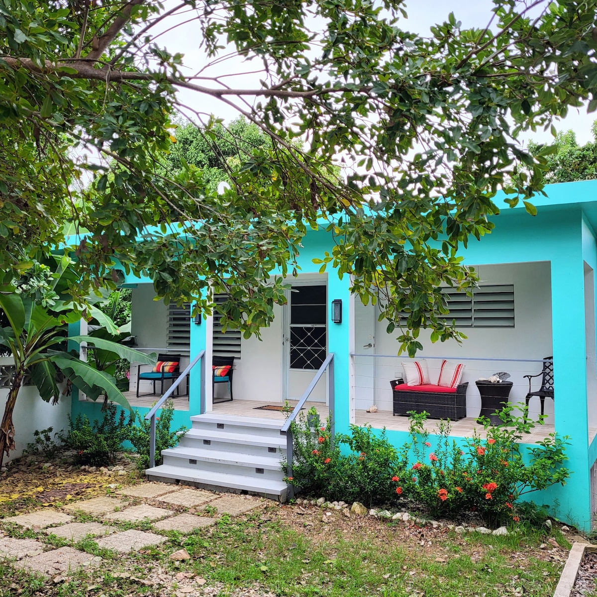 This homey vacation rental is a brand new construction and is a great place to enjoy the outdoors. The interiors feature a modern design, a full kitchen, full bathroom, outdoor shower, and sleeps 3 people. Listen to the sound of the coquis at night and enjoy the tropical breve e, relaxing in the beautiful plunge pool or grilling on the outdoor deck, surrounded by lush palms, fruit trees (breadfruit, lemons, bananas, plantains, cashews), and herbs (mint, sweet peppers, oregano).
