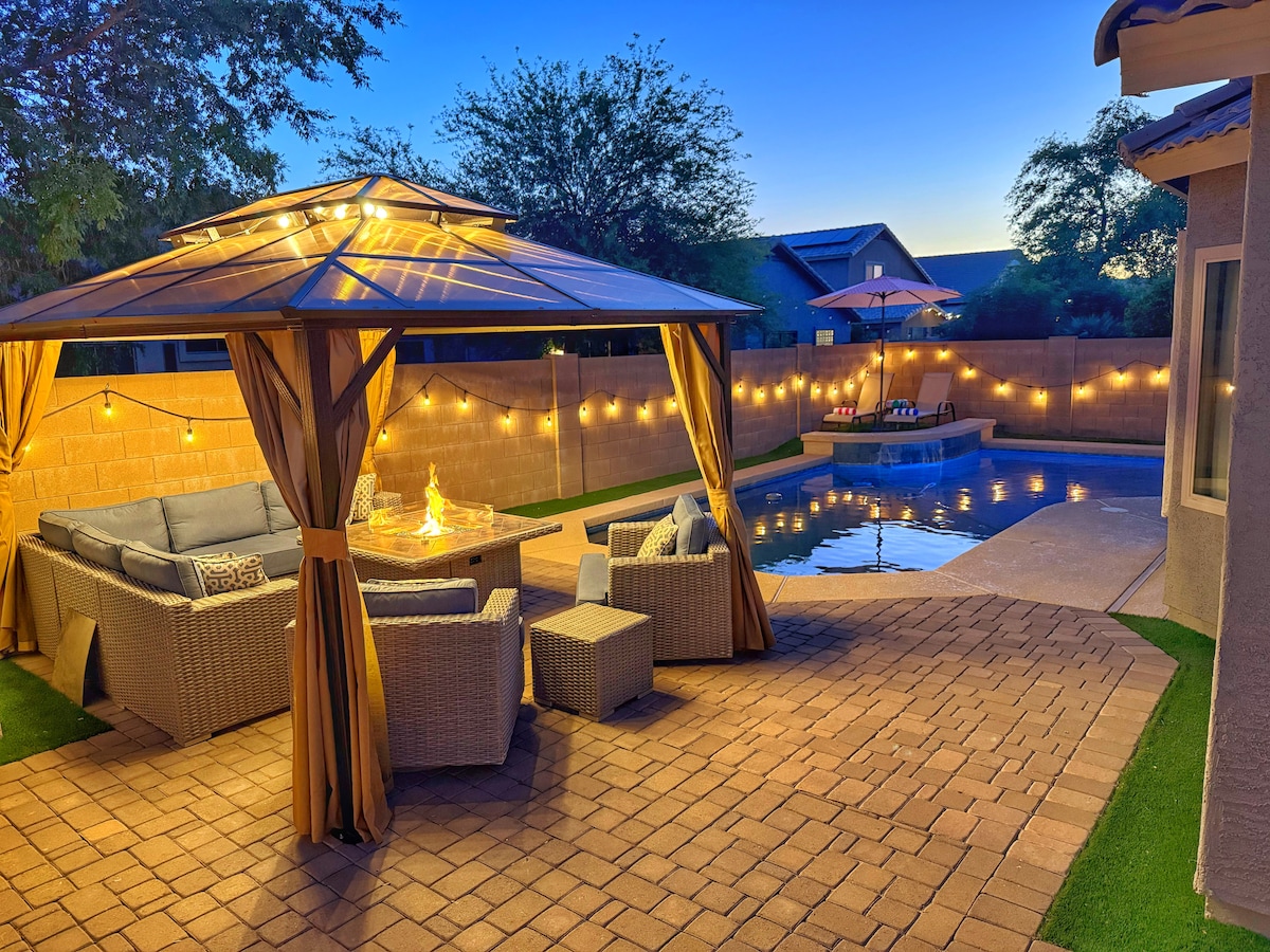 Enjoy this NEW LUXURIOUS Beautiful 3 bedroom house with resort style amenities. Nestled snug into South Mountain, this home is just 20 minutes from Downtown Phoenix/Tempe while being bordered by beautiful mountain trails! The house is fully stocked with the necessities, and beautiful turf for everyone to enjoy! From the Hiking Trails, Heated Pool, Hot Tub, Gym, Fire Pit, Bidet, Mountain Yoga Pad, and Ping Pong, with the fastest wifi, you will NOT want to leave this Home!