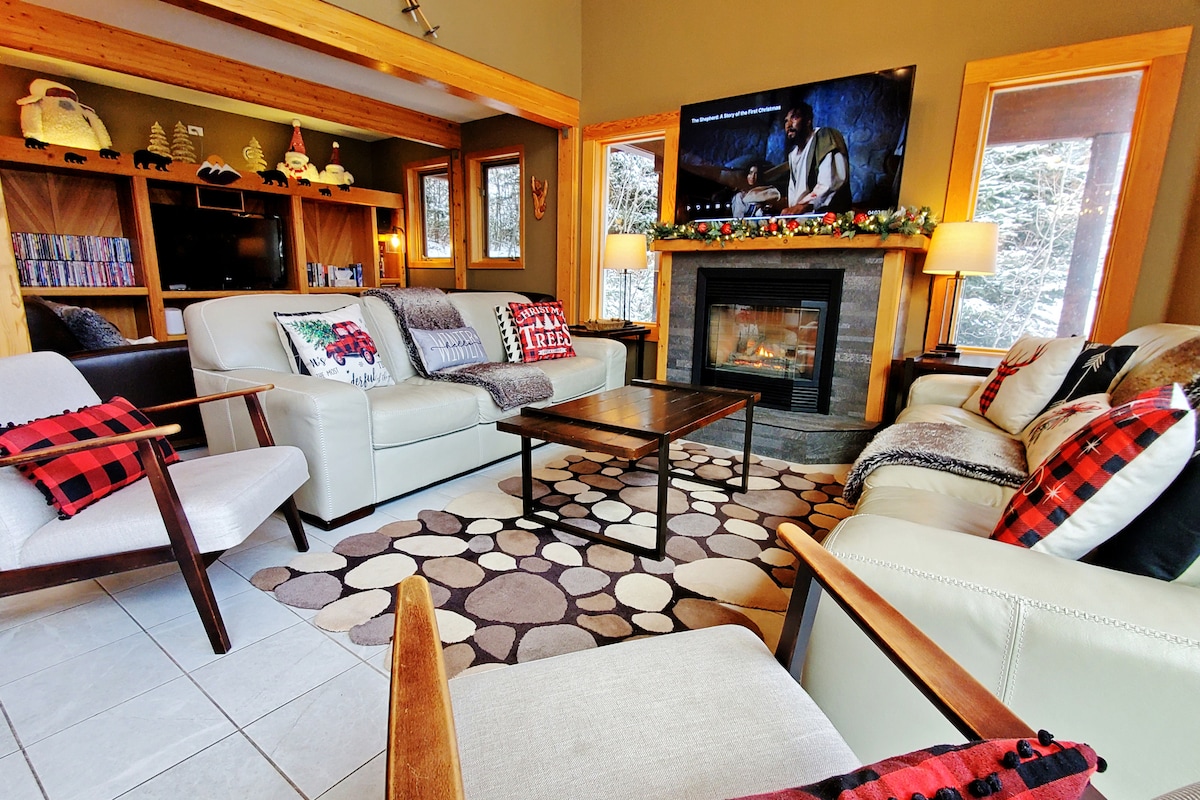 Twin Oaks is a beautiful timber-framed chalet with easy access to ski-in. From the moment you pull in the driveway you'll notice the exceptional design and superb craftsmanship of this stunning home, and it simply gets better when you get inside! From the kitchen, dining area or living room, you've got a fantastic view of the Burfield runs on Mt. Tod across the way. Around the back of the house is your private hot tub and barbeque.