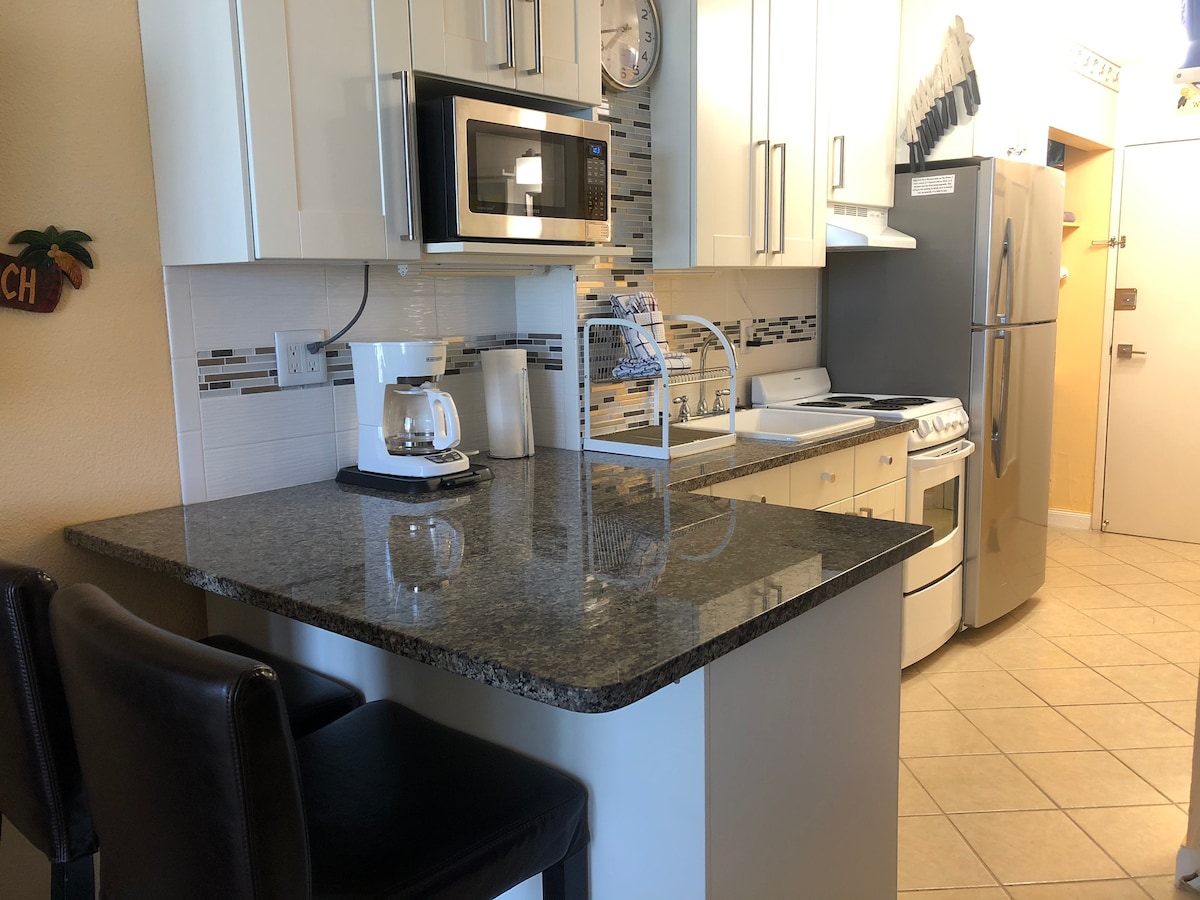 We are one of the closest airbnb to the boardwalk, OnThe Worlds Most Famous Beach with an open Pool 65inch Tv Come enjoy our Newly Furnished Studio with Amazing Top Floor Beach Views. We are the Closest AIRBNB on the Beach to the Daytona International Speedway With king bed and Queen sleeper sofa. Centrally located in the Heart of Daytona Beach. walking distance to the Pier Boardwalk, Restaraunts, and Main Street We have FREE parking for 1 vehicle and provide Coffee,Cream,Sugar,bch chairs.