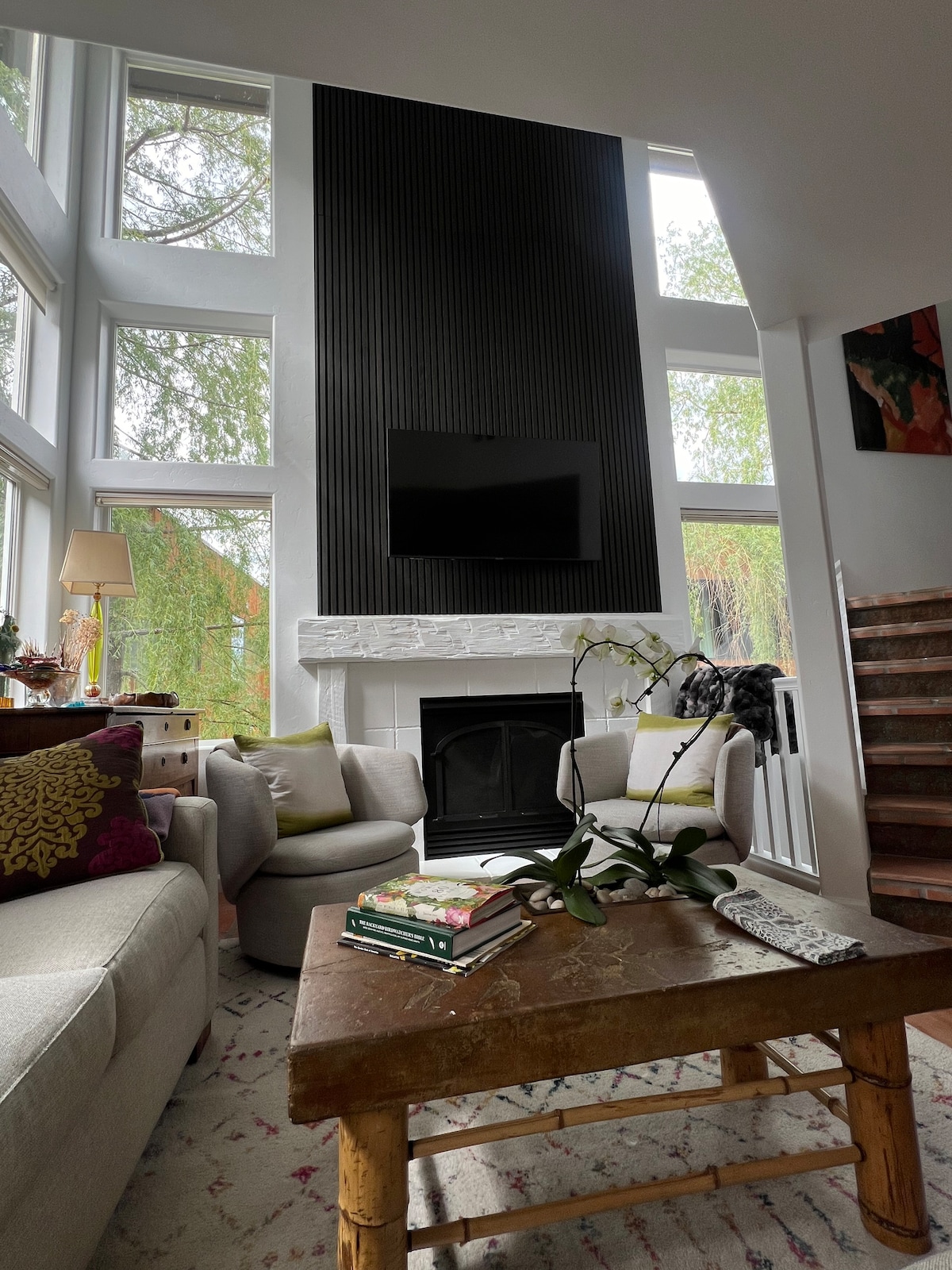 Enjoy a cool home with fast WiFi, cool gadgets, and an unbeatable location! (WiFi test “Fast” rating of 264Mbps.) Home comes with a 84” projector screen TV, espresso machine, turntable & vinyl, Dyson fans, and video games to play — including 3 retro Super Nintendo handheld “SupaBoy” gaming devices! Vintage architecture with a fun new design. Bathroom has a huge walk-in shower with a killer view of Baldy. Located on bike path, right at a bus stop, so it's easy to get to! Walk to the ski hill.
