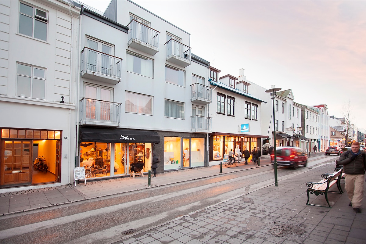 Vitastígur 14A, Downtown Reykjavík. Nice and cozy apartment on the top floor, in just one minute walking distance from Laugavegur Shopping Street, three minute walking distance from the famous church Hallgrímskirkja and also three minutes away from the Swimming Hall. Bonus, grocery store, is 90 seconds away. Much included as you can see on the list - very fast internet. The apartment is available for 4 people, perfect for 2. Shops, bars and restaurants on every corner, up and down Laugavegur.