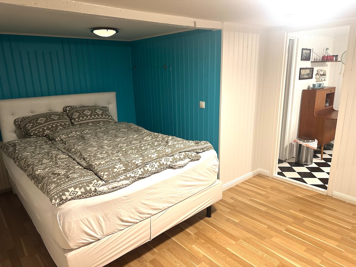An apartment with private entrance, 37 square meters, high ceiling, kitchen with table and chairs, bathroom with shower, small living room with sofa bed for two and a TV Bedroom with two single beds which can be attached together, a laundry room - Everything you need 50/100 meters to restaurants, bars, super markets, bakery, churches, museums and 900 meters to world famous Harpa concert house, a car is not necessary Early check in whenever possible. Luggage store at the house Street parking
