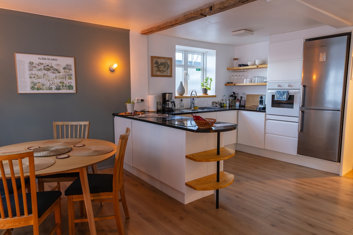 Welcome to your home away from home—a spacious and beautifully designed 3-bedroom, 2-bath loft right in the center of Reykjavik, you’ll have the best of the city right outside your door. —free parking is included! Inside, the space is full of charm and personality, featuring unique art and photography that give it a warm, stylish vibe. Each of the three bedrooms is private, making it perfect for families, friends, or work trips. Have a look at our reviews and see why guests love staying here!
