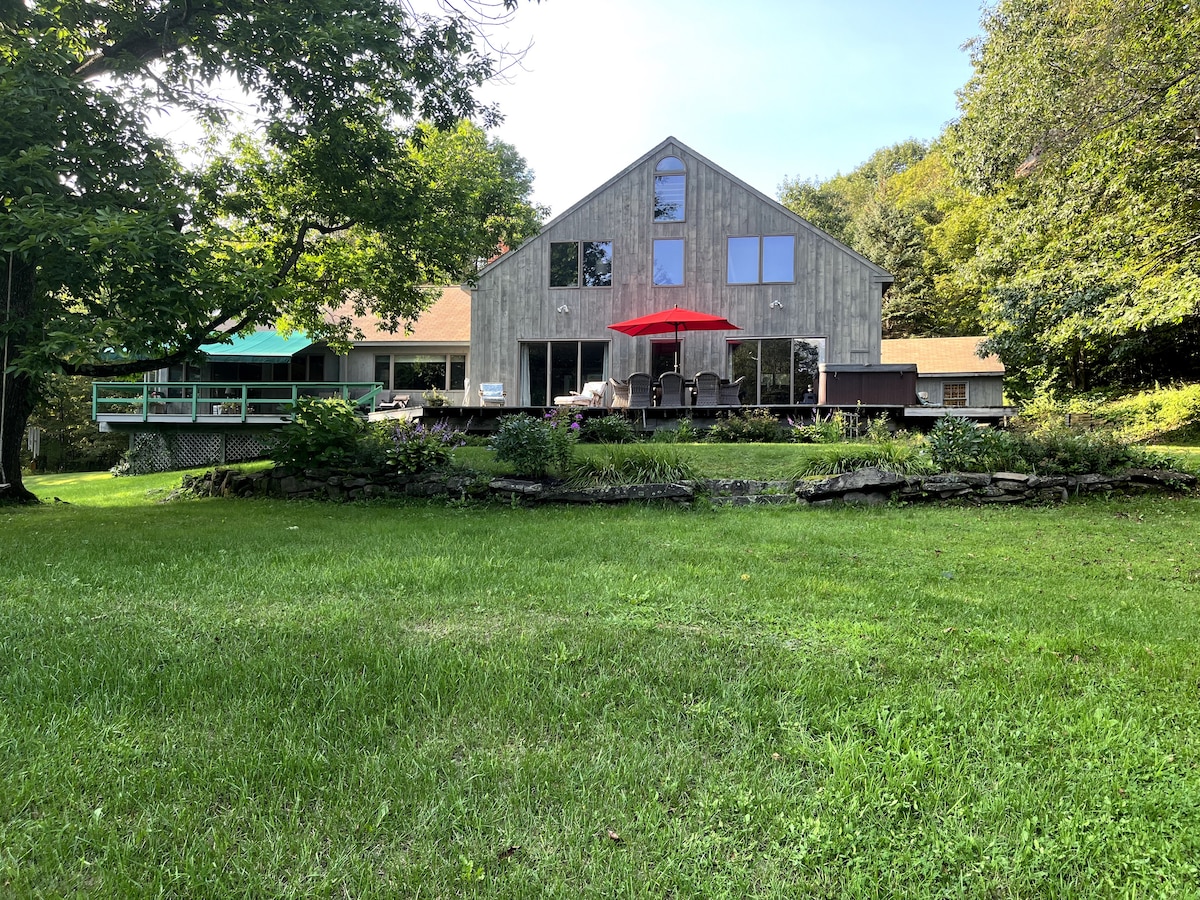 Quechee Haus:热水浴缸、桑拿房、冷水浴池和景观