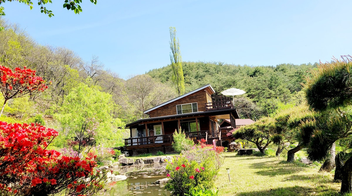 지금. 여기. 그저 아름다운 그곳에서 오롯이 쉼만을 원하는 당신을 위한 공간. 전주에 온다면 휴식은 여기에서. 한옥마을에서 환상의 드라이브 코스로 30분거리. 짤즈부르그를 연상시키는 자연에 둘러싸여 있는 스타일리쉬한 숙소에서 온전한 휴식을 즐기세요. 하루에 한 팀만이 한적하게 아름다운 풍광과 정원을 즐길 수 있습니다. 뒤로는 위봉산, 앞으로는 두 개의 연못이 있는 아름다운 정원 전망이 멋진 옛 행궁터에 자리하고 있습니다. 위봉사, 위봉산성, 위봉폭포가 도보로 10분 이내에 있으며 주변에 환상의 드라이브 코스를 비롯해서 즐길 곳과 볼 곳이 많습니다. 야외 바베큐 시설을 이용하실 수 있습니다. 숯과 그릴 이용 금액은 2만원입니다. (겨울 외부 수도가 얼어서 그릴 청소가 어려우면 바베큐를 하시기 어려울 수 있습니다. ) 장작만 준비해오시면 불멍도 즐기실 수 있습니다. 고기를 굽거나 생선류(새우 등 포함)는 실내에서 구울 수 없습니다. 탕류는 가능합니다. 협조를 부탁드립니다.