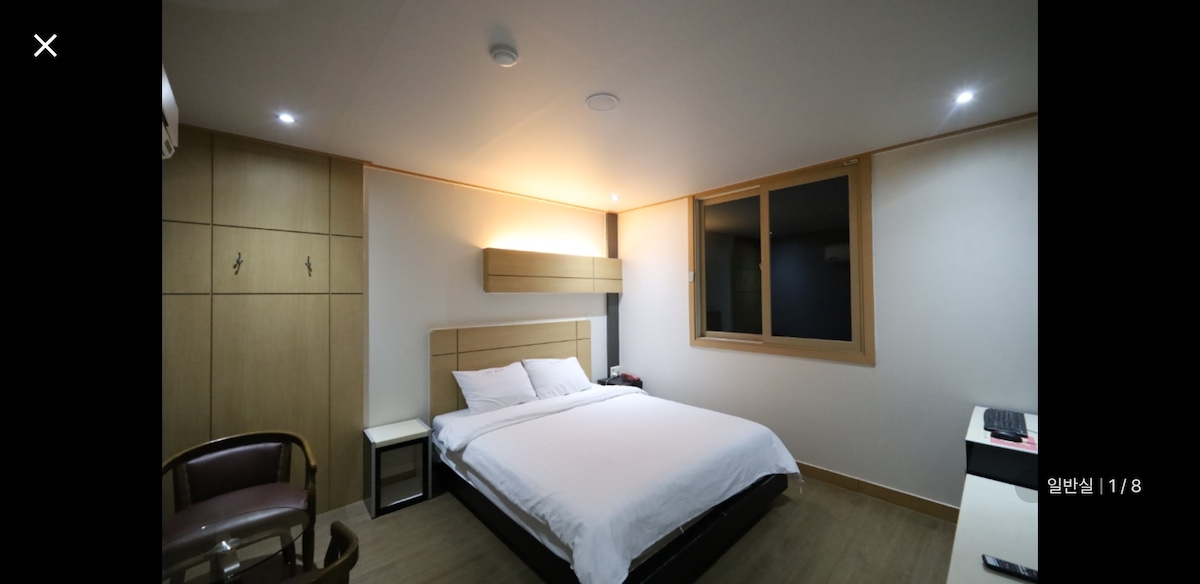안녕하세요. 저희는 다양한 휴식 공간을 연구하고 제공하는 Onda입니다. 이 곳에서 머무르실 모든 분들께서 편안하고 행복한 시간을 보내기를 바랍니다. [숙소 소개] 여수중심상업지구 해변가에 위치하여 뛰어난 조망권과 다양한 여수관광정보를 제공하고 있으며,특히 비지니스맨과 가족,친지관광객에게 파격적으로 저렴한 가격에 숙박, 해상관광, 낚시/레저보트체험, 노래방,어획물즉석회를 이용할 수 있습니다. 객실 유형 원룸형 (더블베드1+화장실1) * 침구는 예약하신 인원에 맞게 제공됩니다.